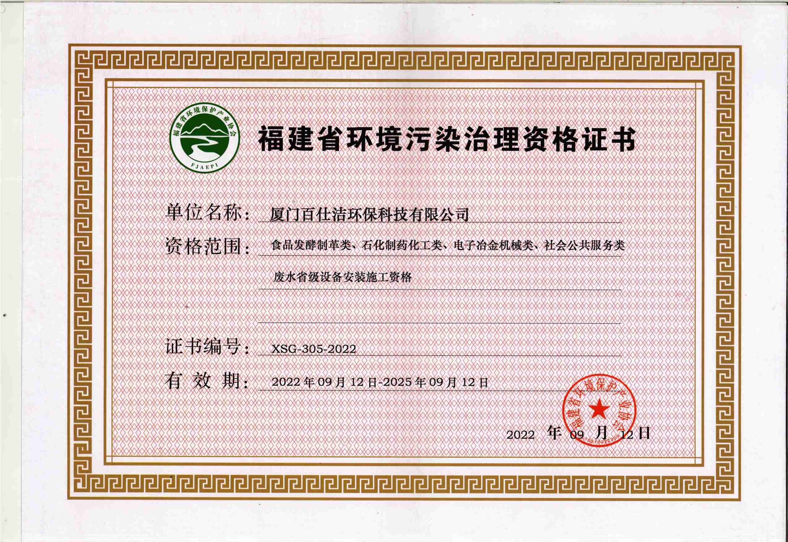 福建省環(huán)境污染治理設(shè)計資格證書